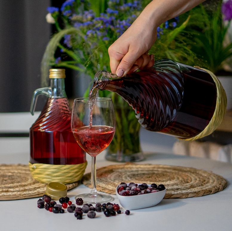 Gąsior przeznaczony zarówno do fermentacji win, piw, miodów pitnych oraz do przechowywania już gotowych trunków. Wykończony jest oplotem u swojej podstawy.