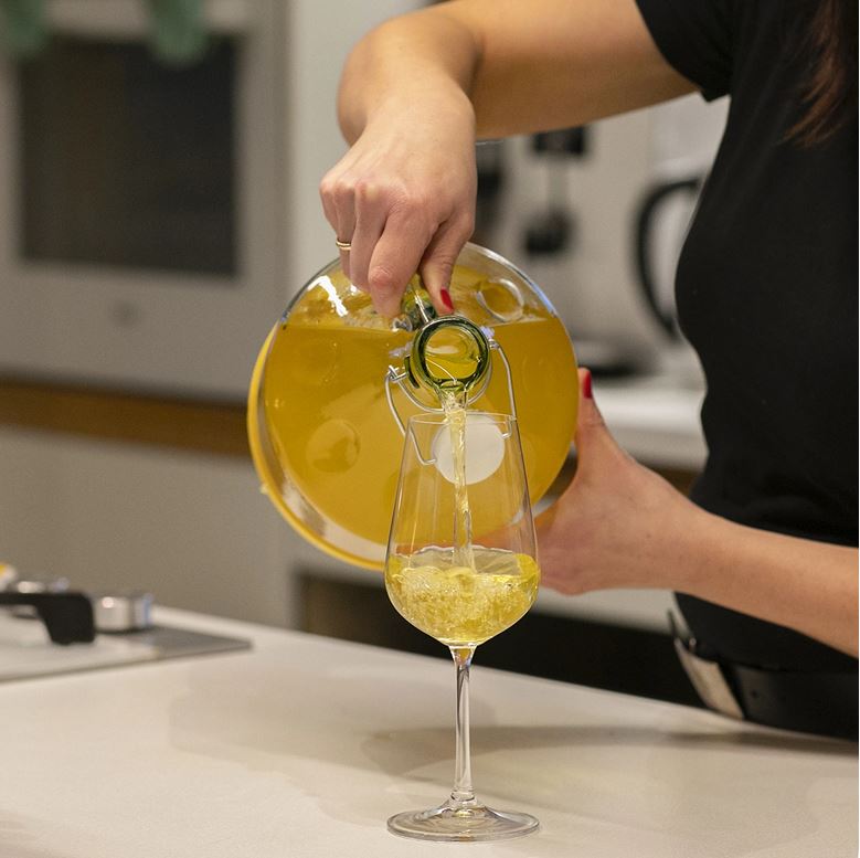 Gąsior przeznaczony zarówno do fermentacji win, piw, miodów pitnych oraz do przechowywania już gotowych trunków. Wykończony jest koszem plastikowym u swojej podstawy.
