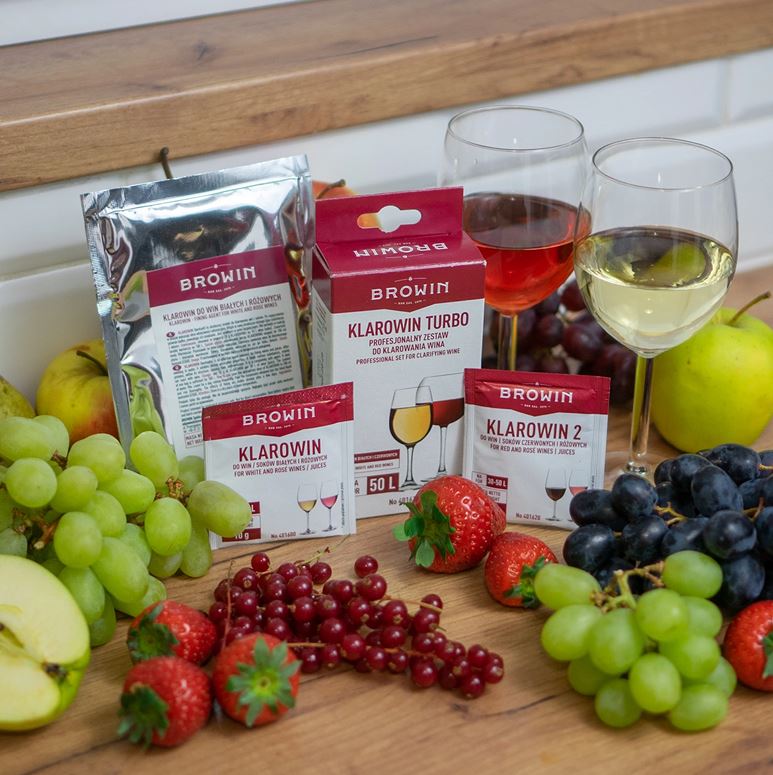 Klarowin to skuteczny środek klarujący do win i soków. W jego skład wchodzi bentonit (naładowany ujemnie), który po napęcznieniu w wodzie wykazuje silne właściwości adsorpcyjne. Wiąże w swej strukturze różnego typu substancje naładowane dodanie, głównie białka, jony metali, powodując ich osadzanie na dnie naczynia. Delikatnie zwiększa zasadowość wina. Tworzący się osad jest mało zbity i delikatny, łatwy do sączenia. Stosowany głównie do win białych i różowych.