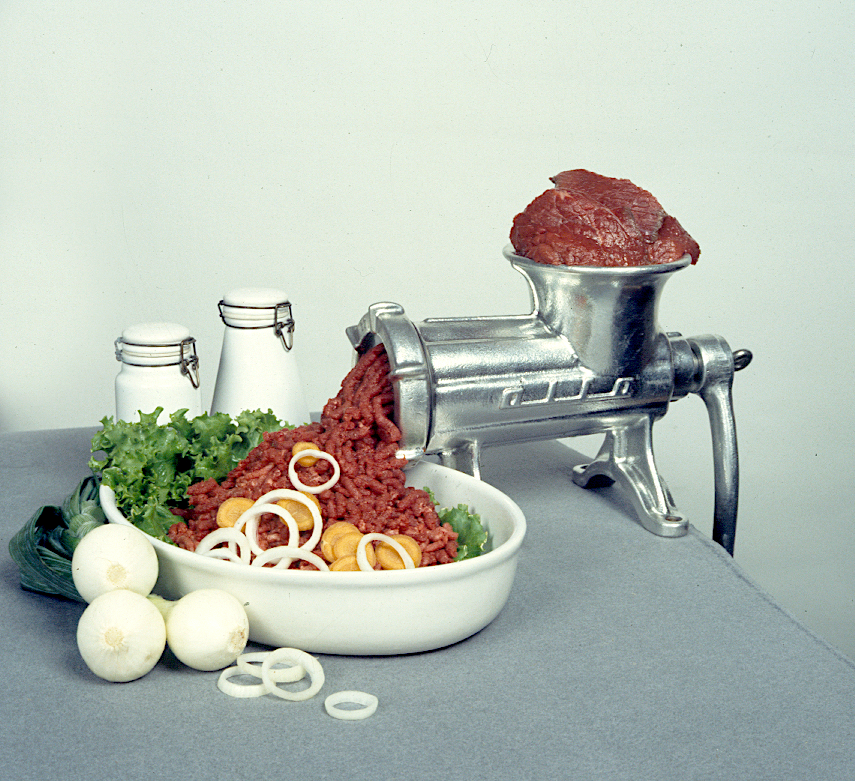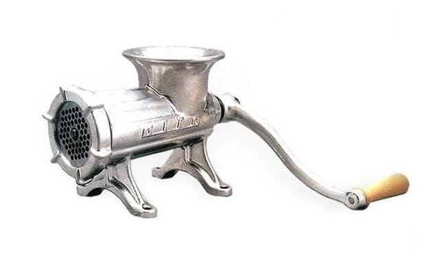 Mięso przeznaczone do mielenia należy dokładnie oczyścić z kości, a następnie pokroić wzdłuż na małe kawałki. Słoninę należy pokroić podobnie jak mięso. Pokrojone kawałki należy stopniowo wkładać przez kielich do komory maszynki., kręcąc jednocześnie korbą, aby wprawić ślimak i nóż w ruch obrotowy.