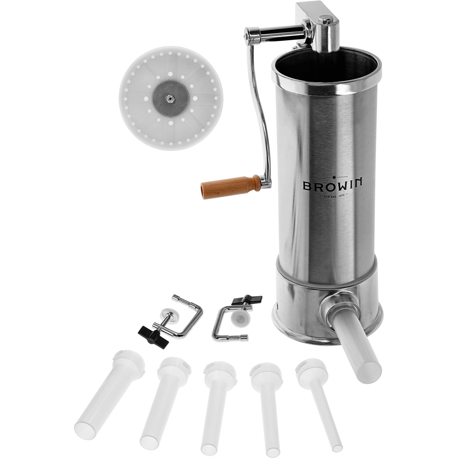 Pionowa nadziewarka o imponującej pojemności 5 kg to absolutnie niezastąpione narzędzie, które zmieni Twoje podejście do wędliniarstwa. Solidny cylinder ze stali nierdzewnej gwarantuje trwałość i higienę, a dołączony, specjalnie zaprojektowany, odporny na zginanie tłok zapewnia płynną pracę, nawet przy dużej sile nacisku na farsz. Produkt wyposażono aż w 6 wymiennych lejków, umożliwiających tworzenie wyrobów o różnej średnicy – od delikatnych parówek po grube kiełbasy czy kaszanki. Zwiększ produkcję, oszczędź czas i ciesz się perfekcyjnym efektem!