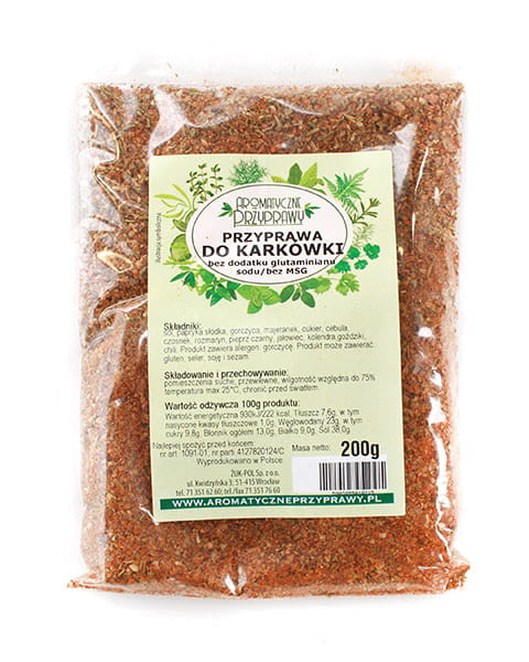 Przyprawa do karkówki to mieszanka ziół i przypraw. Jej głównym zadaniem jest podkreślenie smaku tłustszego mięsa, jakim jest karkówka, ale można ją z powodzeniem wykorzystać w kuchni na wiele innych sposobów.