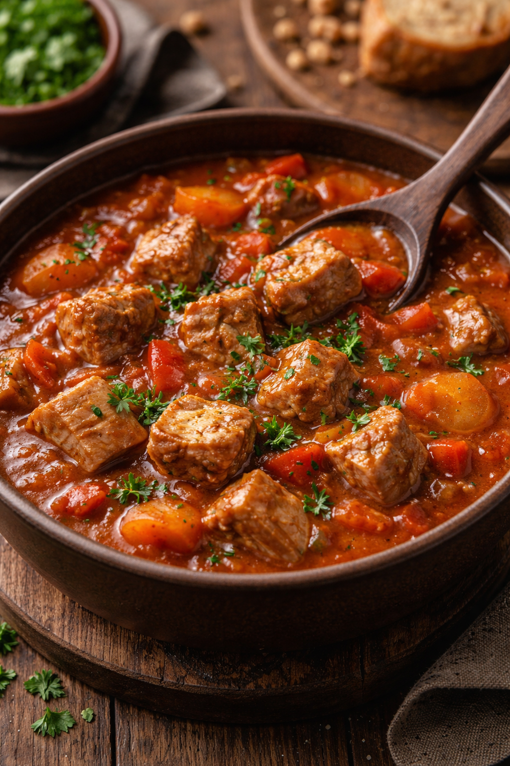 - Przyprawę dodaje się do mięsa wieprzowego podczas smażenia lub duszenia – szczególnie w daniach takich jak gulasz, bigos, leczo czy potrawki.