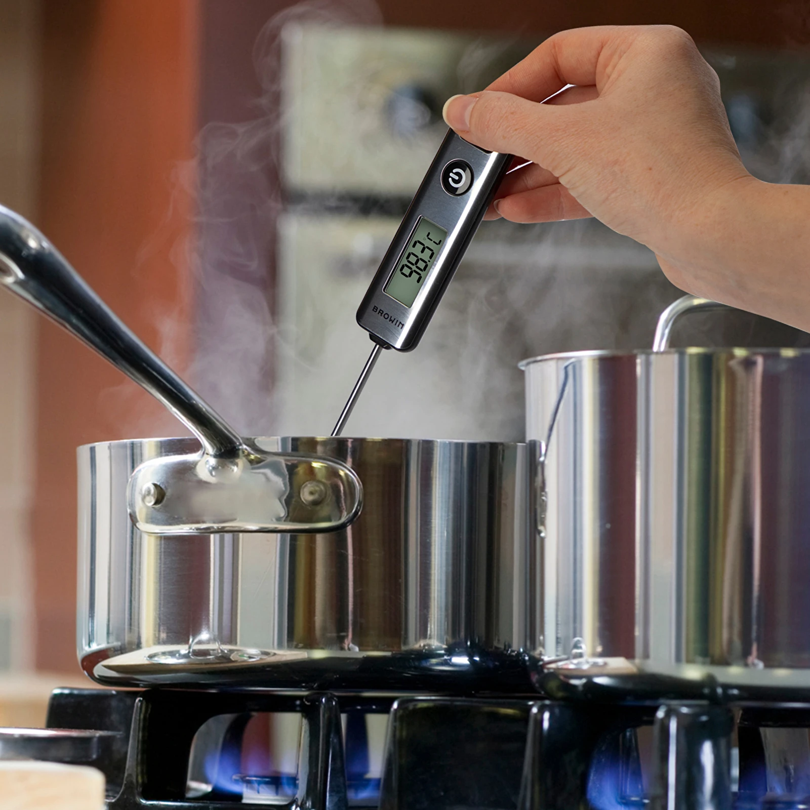 Elektroniczny, bardzo precyzyjny termometr szpilkowy z wyświetlaczem LCD. Idealny do pomiaru temperatury mięsa, ciast, napojów itp. Urządzenie jest praktyczne oraz bardzo łatwe w obsłudze. Doskonale sprawdzi się w każdej kuchni oraz gastronomii.